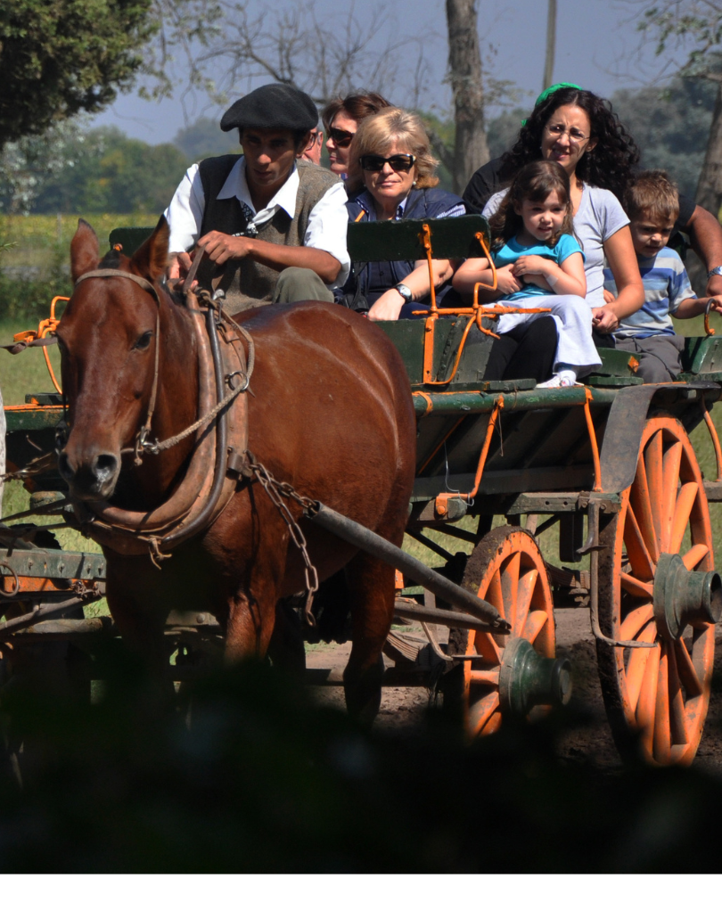 Algunas de las actividades que realizamos son paseos a caballo y en carruajes, show de canto y danzas folklóricas durante el almuerzo, carrera de sortijas, carreras cuadreras, demostración de boleadoras…