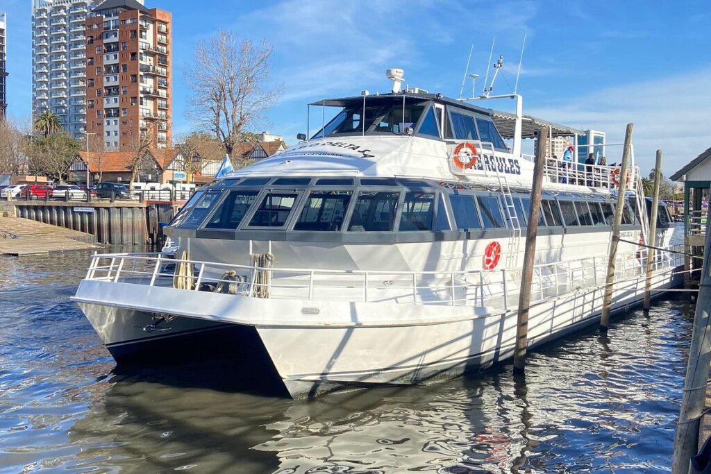 Paseo en el catamarán histórico Hércules por el Río Tigre y el Río Luján, con postales del Delta y vistas hacia la zona de San Isidro.